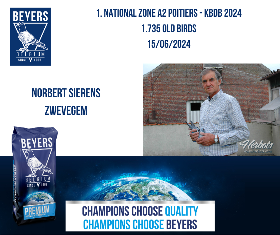 • 1st National Zone A2 POITIERS (Vivonne) 1.735 Old Birds KBDB 2024