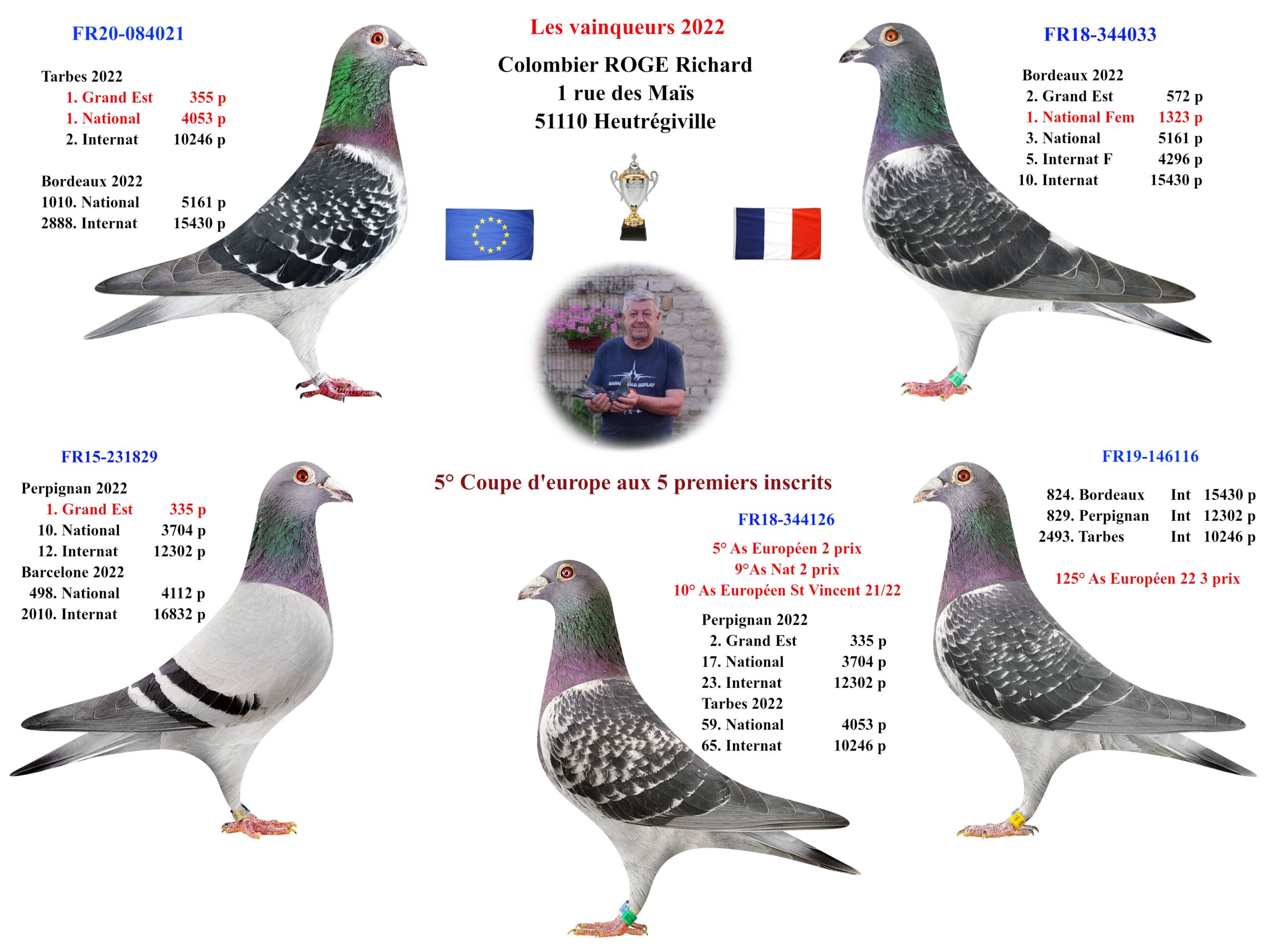 • 1st National Tarbes 4.053 Old Birds France 2022