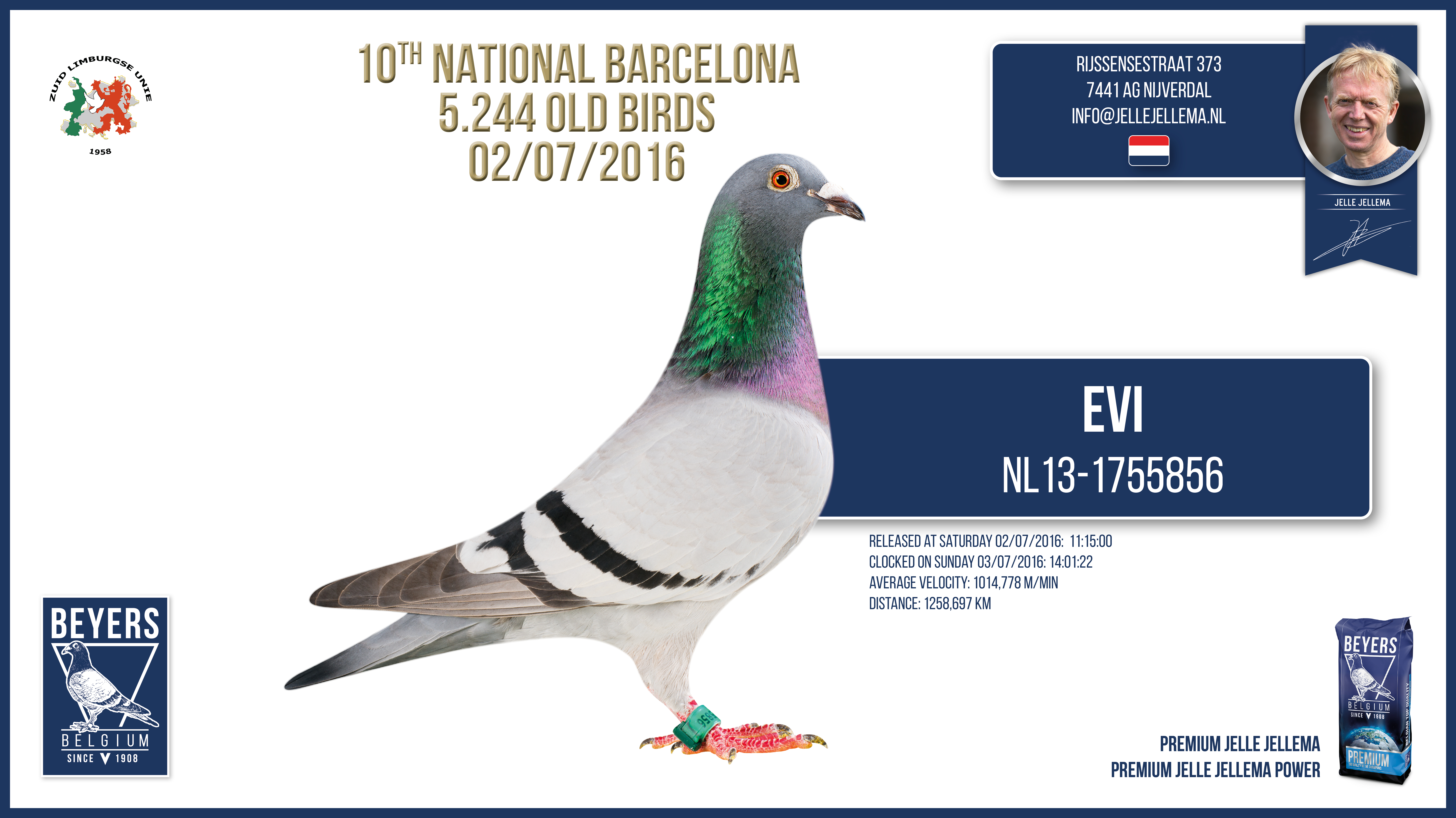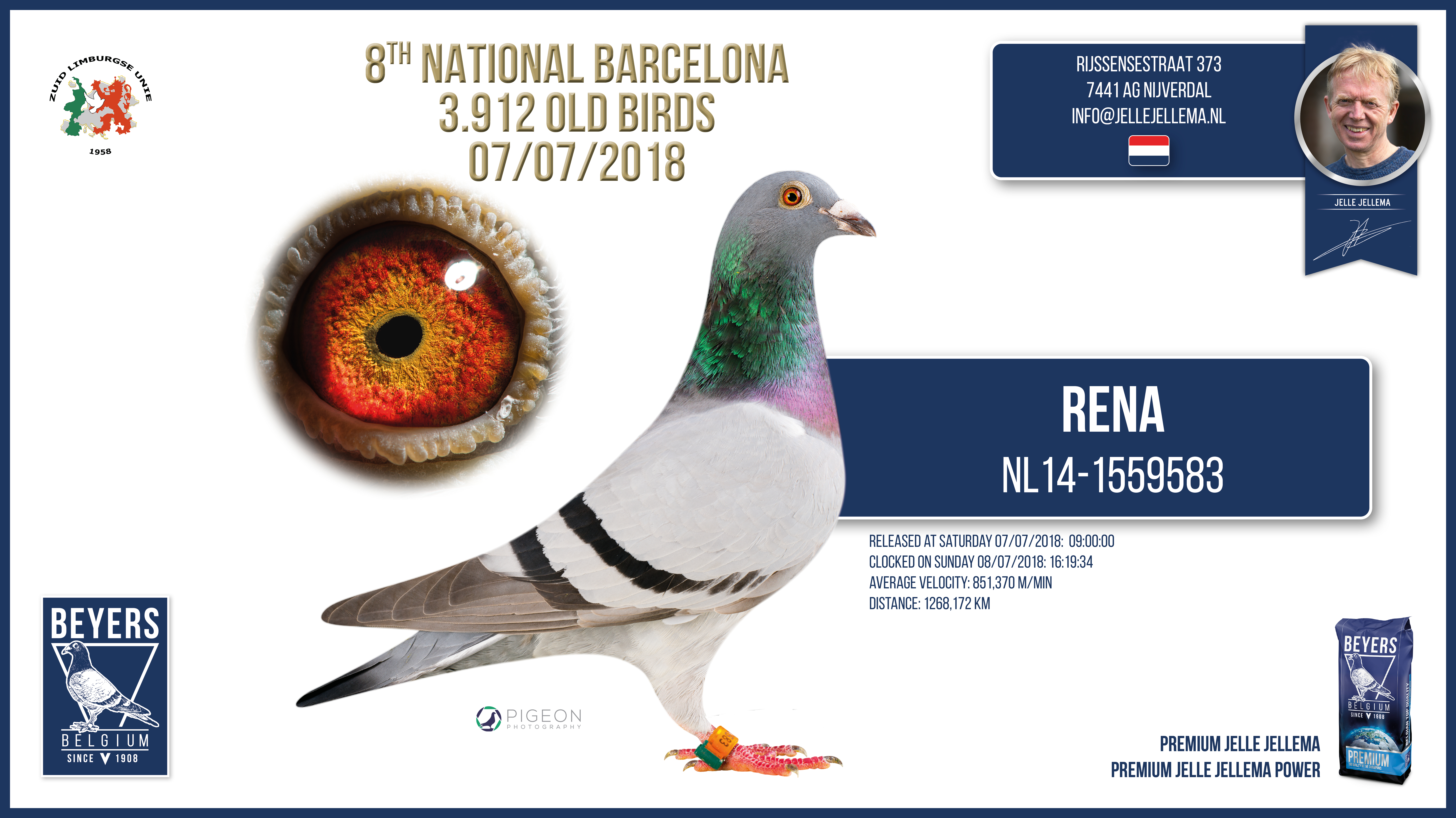 An extreme energy (fat-rich) and protein-rich mixture consisting of 27 different ingredients that in terms of choice and quantity were meticulously selected as the perfect supplement in combination with PREMIUM JELLE JELLEMA for the internationally heavy long-distance race programme and during the breeding and moulting period.